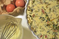 Week 28: Quiche Posted on November 16, 2010Categories 52, food Quiche doesn’t need to have a quiche-dough-bottom. You can just as easily make the bottom out of slices of wholewheat bread with the crusts cut off. Proof: Recipe: