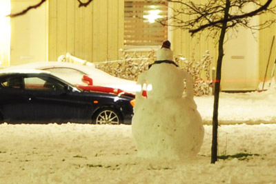 It’s been snowing all day here, but apart from buying groceries, I didn’t feel like going out with my camera. Tomorrow might just be too late though, as the forecast claims it’s all gonna melt tonight, and we’ll have sleet and hail kinda weather. So, I left it till dark, and then remembered I could take a longer exposure shot. This one’s taken from my balcony with a tripod: F/11, 13 seconds, ISO-200. A genuine outdoors tungsten light photo :-)